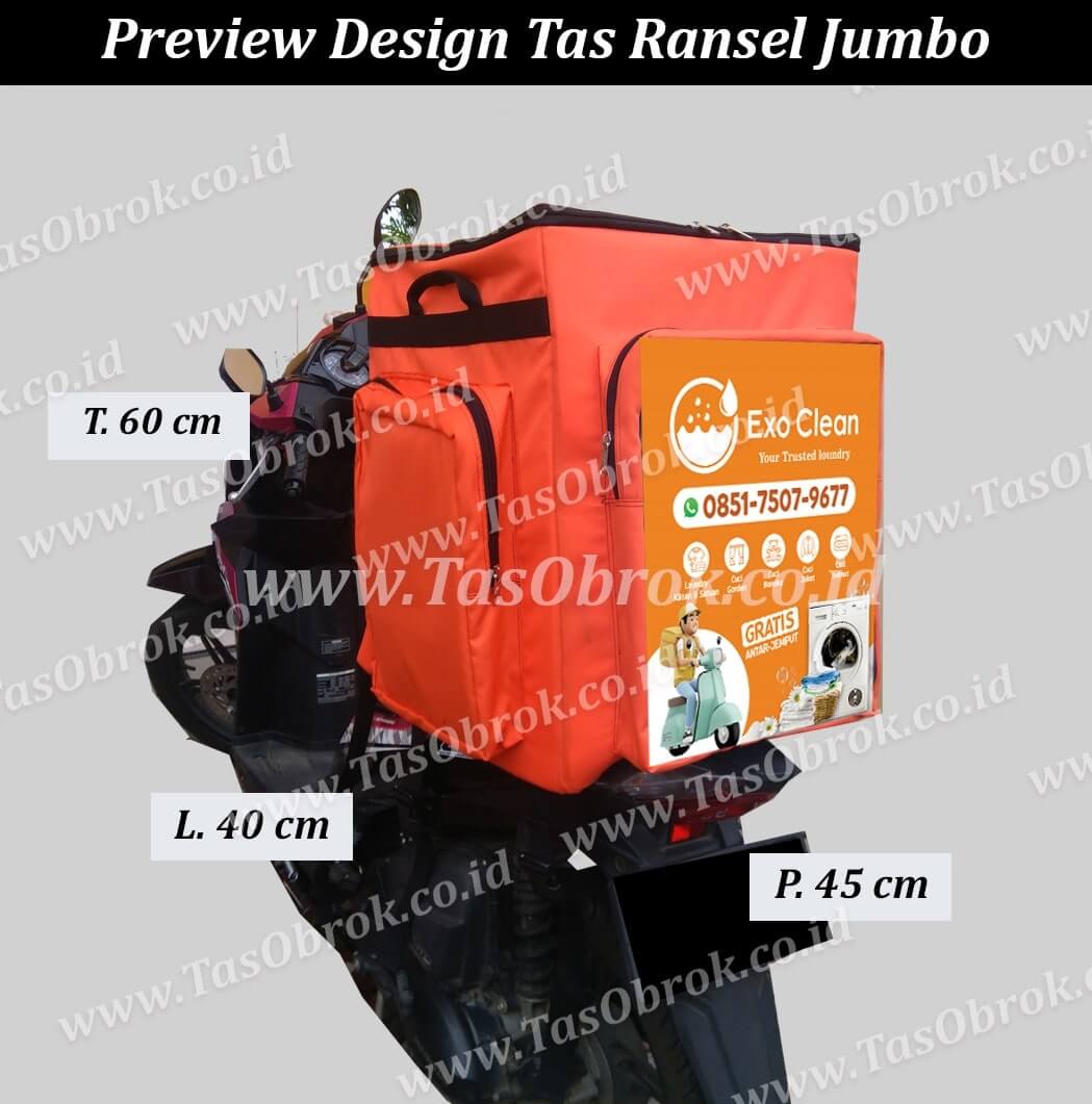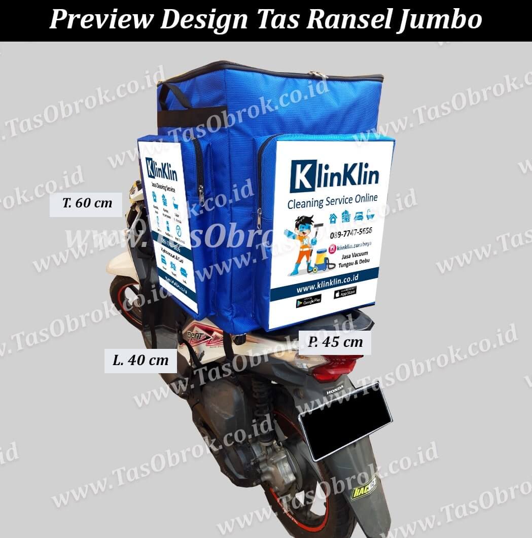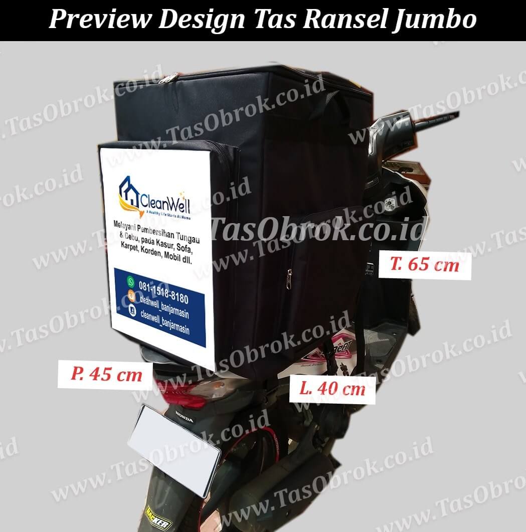 Kami juga produksi Ransel Delivery untuk usaha Jasa laundry, Cleaning Service, dan Vacum Cleaner. Tas kami dibuat dari bahan Polyester Waterproof, dan juga Material terbaik. Sehingga kokoh dan bisa muat untuk banyak baju customer anda. Ukuran bisa menyesuaikan kebutuhan customer.